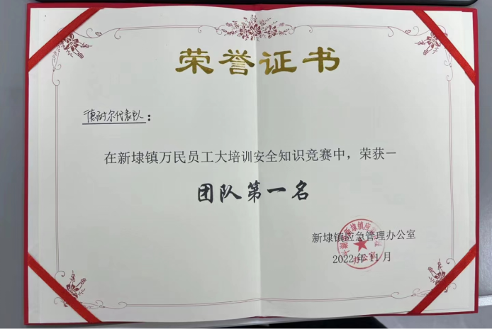 近日,为全面实施全民安全素养提升计划,根据《浙江省企业百万员工安全大培训实施方案》和《嘉兴市企业十万员工安全大培训实施方案》的有关要求,平湖市新埭镇应急管理办公室结合实际,迅速组织开展“全市企业万名员工安全大培训安全生产知识竞赛”yl23411永利官网登录尔能源装备有限公司代表荣获团体冠军。
